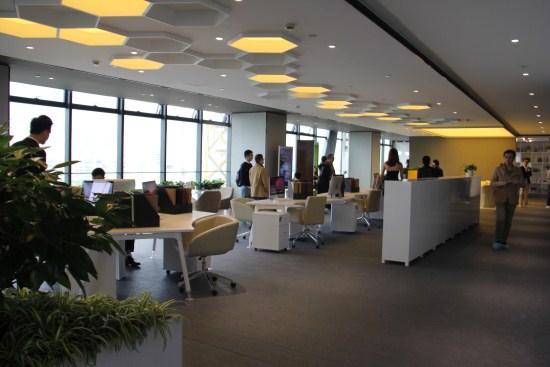 此次開放的情景體驗區位于方大城2#樓的7層,該標準層總面積約2130平方米,戶型建筑面積約在103—290平方米之間。這次展示的情景體驗區分為3個單元,每個單元展示了不同的主題,分別是會議室、前臺和員工辦公區以及總經理辦公室,每一個單元的空間都得到了充分的利用。每一個單元都附有一個陽臺,其中一半面積將作為贈送面積。2#樓整棟4層到23層是作為辦公區域,它將還有4層商業服務區和4層地下停車場(整個項目內含2088個停車位)。