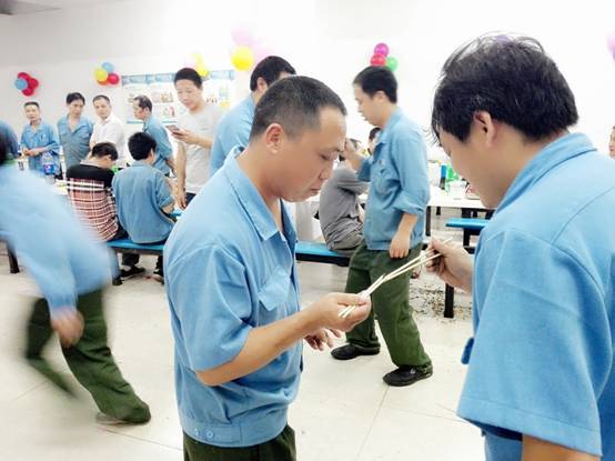 在員工享用美食與水果的同時,當晚現場進行了踩氣球、夾傳瓜子與紙杯傳水三輪游戲,每個游戲都由壽星們自由組隊參與。第一個游戲“踩氣球”,兩人三足需要高度的協調與配合,為了躲避對手突襲,壽星們上躥下跳,左右擺動,動作滑稽,惹得全場哄堂大笑;第二個游戲“夾傳瓜子”,大家爭分奪秒往下一位隊友手中輸送瓜子,在輸送的過程中如果瓜子不慎掉落只好重新開始,在圍觀人員的助威吶喊聲中,壽星們加快步伐只為成功夾傳更多的瓜子;最后一個游戲“紙杯傳水”,要求選手們動作謹慎且快,配合度高,為把紙杯的水倒入隊友的紙杯中時能夠滴水不漏,大家的傳輸POSE千奇百怪,笑料百出,現場一片歡聲笑語。