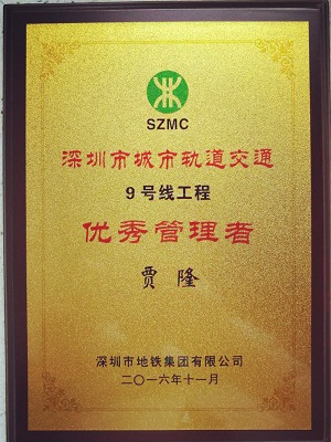 10月28日,深圳市城市軌道交通9號線開通運營,11月18日,在深圳市城市軌道交通9號線開通參建單位表彰大會上,深圳市方大自動化系統有限公司榮獲“深圳市城市軌道交通9號線工程突出貢獻獎”稱號,自動化公司項目經理賈隆榮獲“深圳市城市軌道交通9號線工程優秀管理者”稱號。