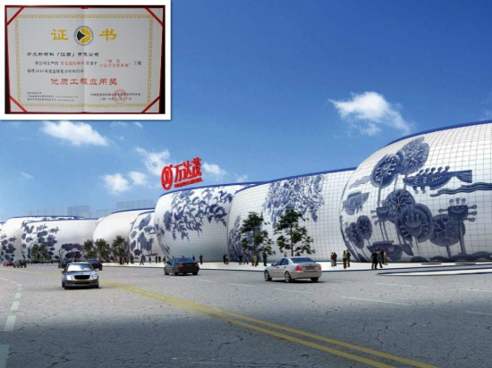 方大青花瓷鋁單板應用于南昌萬達文化旅游城,榮獲2016年度金屬復合材料行業“優質工程應用獎”