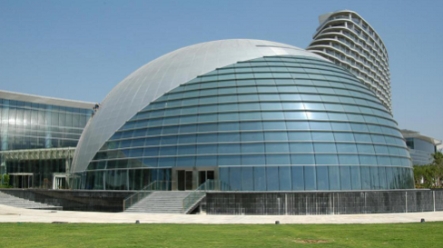 在幕墻安裝階段,方大團(tuán)隊(duì)在施工方法上大力創(chuàng)新。針對(duì)建筑正面肋點(diǎn)式玻璃幕墻跨度大的情況(最大跨度達(dá)到16米),考慮到建筑美觀及功能使用要求,采用了拉桿玻璃肋相結(jié)合的幕墻新形式,既通透美觀,同時(shí)又有效的減小了對(duì)室內(nèi)空間的占用。該項(xiàng)目音樂廳為半橢球形,高度達(dá)25米。其奇特的造型給幕墻施工增加了不少的難度。方大團(tuán)隊(duì)采用三維空間電腦模擬放線定點(diǎn)技術(shù),精準(zhǔn)安裝,完美復(fù)原了音樂廳幕墻設(shè)計(jì)效果。