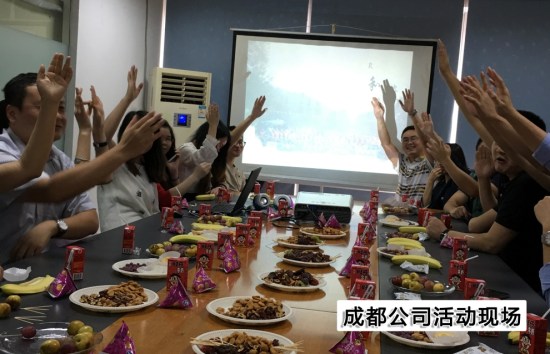 在方大集團(tuán)成都公司,9月30日下午舉辦了一次輕松、熱鬧的中秋茶話會。團(tuán)聚和暢聊是這次活動的主要內(nèi)容,活動現(xiàn)場歡笑聲、祝福聲不絕于耳,精心準(zhǔn)備的水果點(diǎn)心、悠揚(yáng)的音樂和中秋主題背景共同營造了濃濃的中秋佳節(jié)氛圍。在這花好月圓的時(shí)刻,雖然員工們遠(yuǎn)離家鄉(xiāng),但方大人聚在一起,就是相親相愛的一家人。