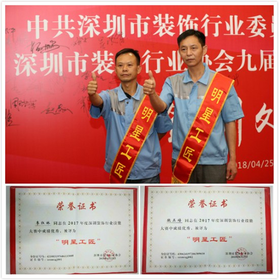 日前,深圳市方大建科集團(tuán)有限公司員工李紅林、魏正培,憑借過硬的技術(shù)、精湛的工藝,在深圳市裝飾行業(yè)明星工匠評(píng)選活動(dòng)中脫穎而出,榮獲“明星工匠”稱號(hào)。