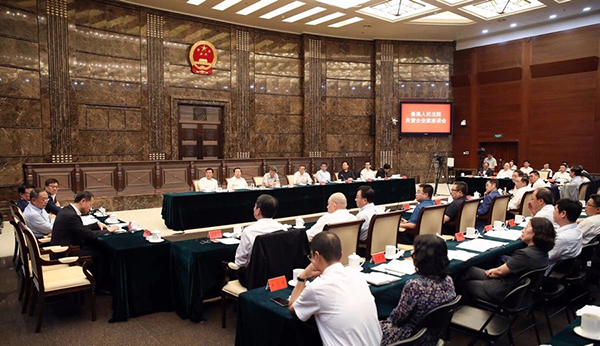 最高人民法院黨組成員孫華璞主持座談會。最高人民法院院領(lǐng)導(dǎo)李少平、馬世忠、羅東川、楊萬明、劉貴祥出席會議,最高人民法院有關(guān)部門負責人,及柳傳志、梁穩(wěn)根、陳東升、王玉鎖、劉慶峰、張文中、洪崎、王均軍等來自科技、金融、醫(yī)藥、教育等不同領(lǐng)域的22位民營企業(yè)家參加會議。