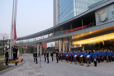28日晨,集團總部以及駐深公司各部門經理及以上管理人員聚集到方大城,舉行升旗儀式。7時零2分,國旗和方大旗伴隨著日出冉冉升起,激昂的國歌在每個人耳邊奏響,為方大集團的二十八周年紀念日帶來祝福。集團創始人、董事長熊建明講話,回顧了二十八年來的奮斗與拼搏,對每一位為公司做出貢獻的員工表示感謝,并希望大家繼續努力,為公司美好的明天再創輝煌。