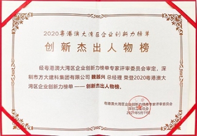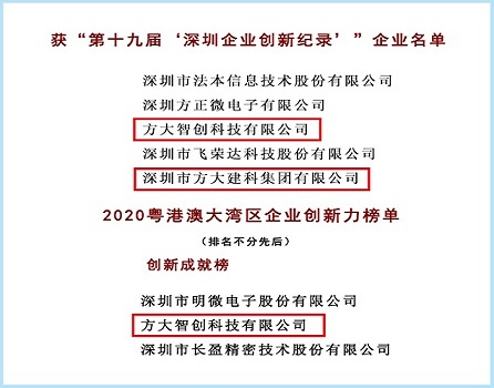 方大集團子公司榮膺“深圳企業創新記錄”、“2020粵港澳大灣區企業創新力榜單”多項榮譽